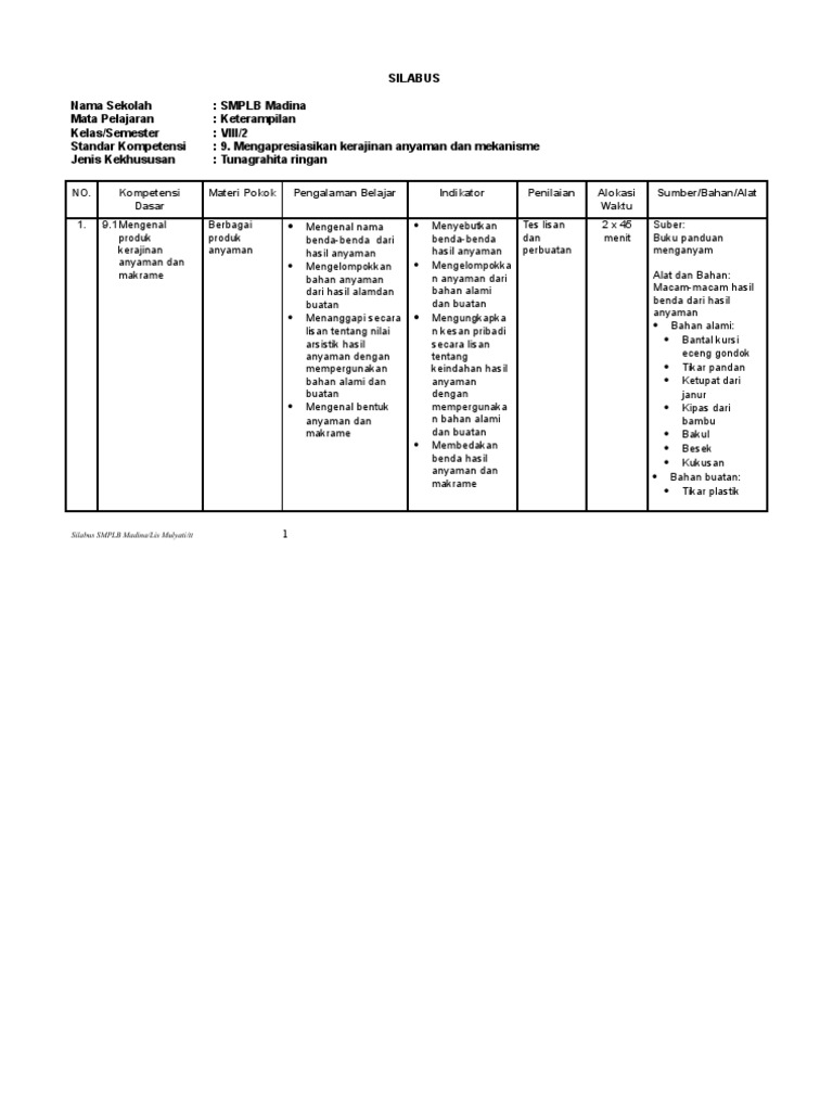Karena, dengan keselarasan antara rpp dan silabus, akan berdampak positif terhadap pencapaian pembelajaran yang mudah terukur dan mudah untuk diperbaiki. Silabus sdlb tunagrahita kelas 3 kurikulum 2013. 3 kata pengantar pemberlakuan uu republik indonesia no. Pada kesempatan ini admin yulianip. Silabus merupakan acuan penyusunan kerangka pembelajaran untuk setiap bahan kajian mata d.